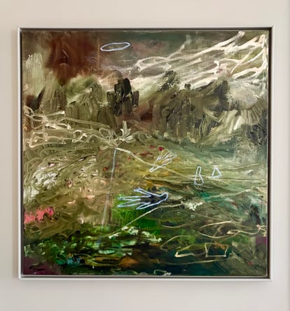 I combine thin, transparent layers with opaque, impasto sections to add variation and complexity to the paintings. Often, I allow earlier layers to emerge by thinning the paint or scraping away parts of the surface, creating a raw and organic quality. This technique fosters a sense of movement and transformation, as if the painting exists in a constant state of formation and dissolution.