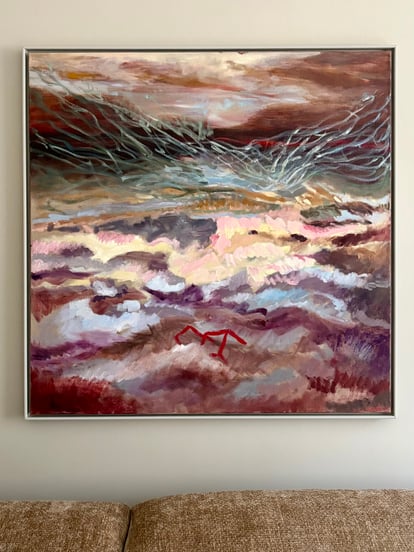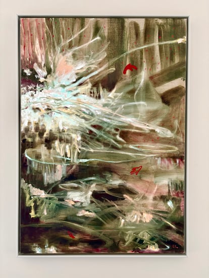 I work intuitively with painting, where color and movement serve as vessels for emotions, memories, and dreamlike states. Through sweeping brushstrokes, layered colors, and spontaneous markings, I create images that balance between the abstract and the symbolic. I am fascinated by how the materiality and energy of color can evoke both presence and transience— as if the paintings capture something in motion, something on the verge of emerging or fading away.