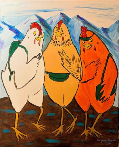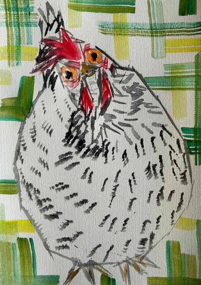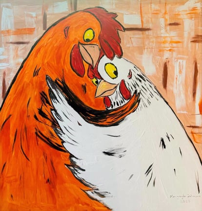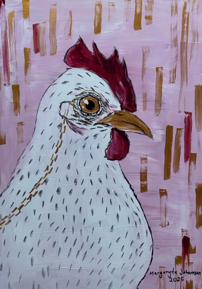 Margaryta Johansson is a Swedish artist with Ukrainian roots, known for her distinctive paintings that celebrate the beauty, individuality, and quiet dignity of chickens. Living close to nature, she finds endless inspiration in the rhythm of rural life and the creatures that inhabit it.