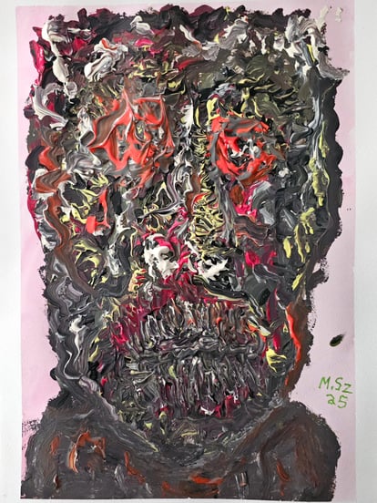 My process is mostly chaos. most paintings don't take more then a day max.