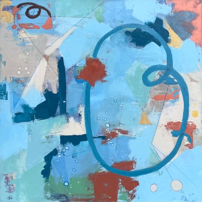 My technique is rooted in layered acrylic and mixed media. I begin with loose marks to establish energy and direction, then build structure using brushes, palette knives and drawing tools. Each layer interacts with the ones beneath, creating depth, tension and visible traces of the process.