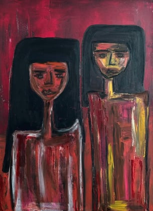 Selma Dedić is a contemporary artist working at the intersection of figurative expressionism and lyrical abstraction. Her visual language is defined by elongated bodies, introspective faces, and subtle emotional layers that create a distinct and recognizable aesthetic.