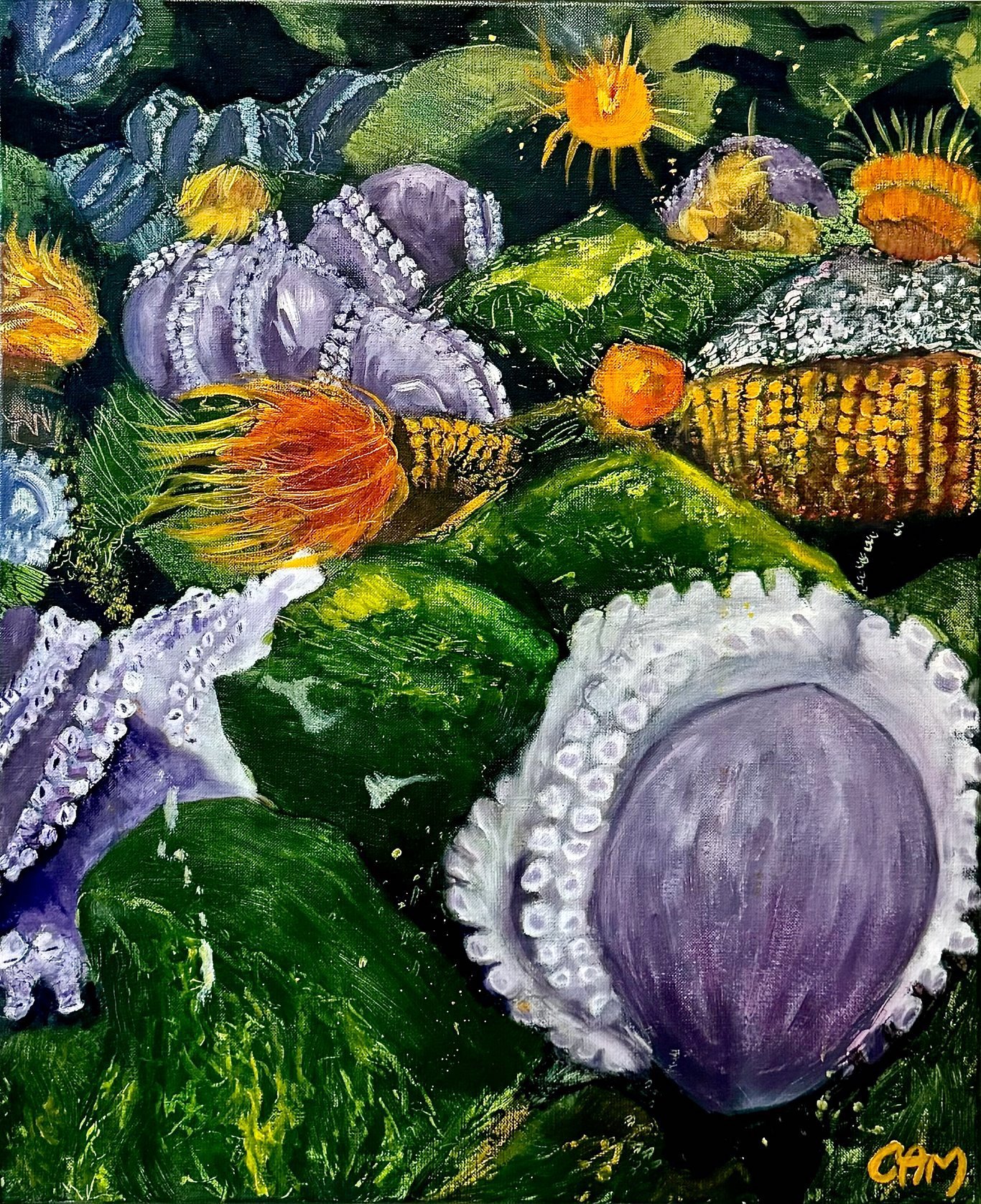 is passionate about environmental sustainability, meticulously selecting eco-friendly materials and techniques for her work. She uses safflower oil in her paints to reduce environmental impact. Camilla combines classical techniques with modern materials to create pieces that are not only beautiful but also carry an important message about sustainability.