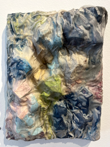has recently shifted from working with clay and ceramics to using recycled materials. She creates relief paintings using styrofoam from construction sites, yarn, and thread scraps. Johanna’s art is an excellent example of how almost anything can be transformed into art. Her guiding principle is reuse, aiming to create pieces that are both aesthetically pleasing and environmentally friendly.